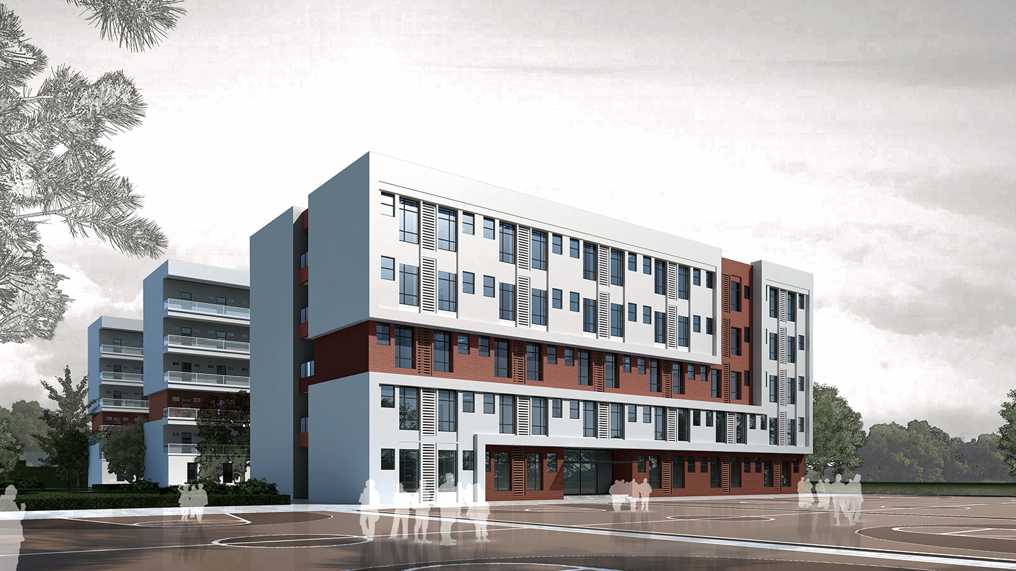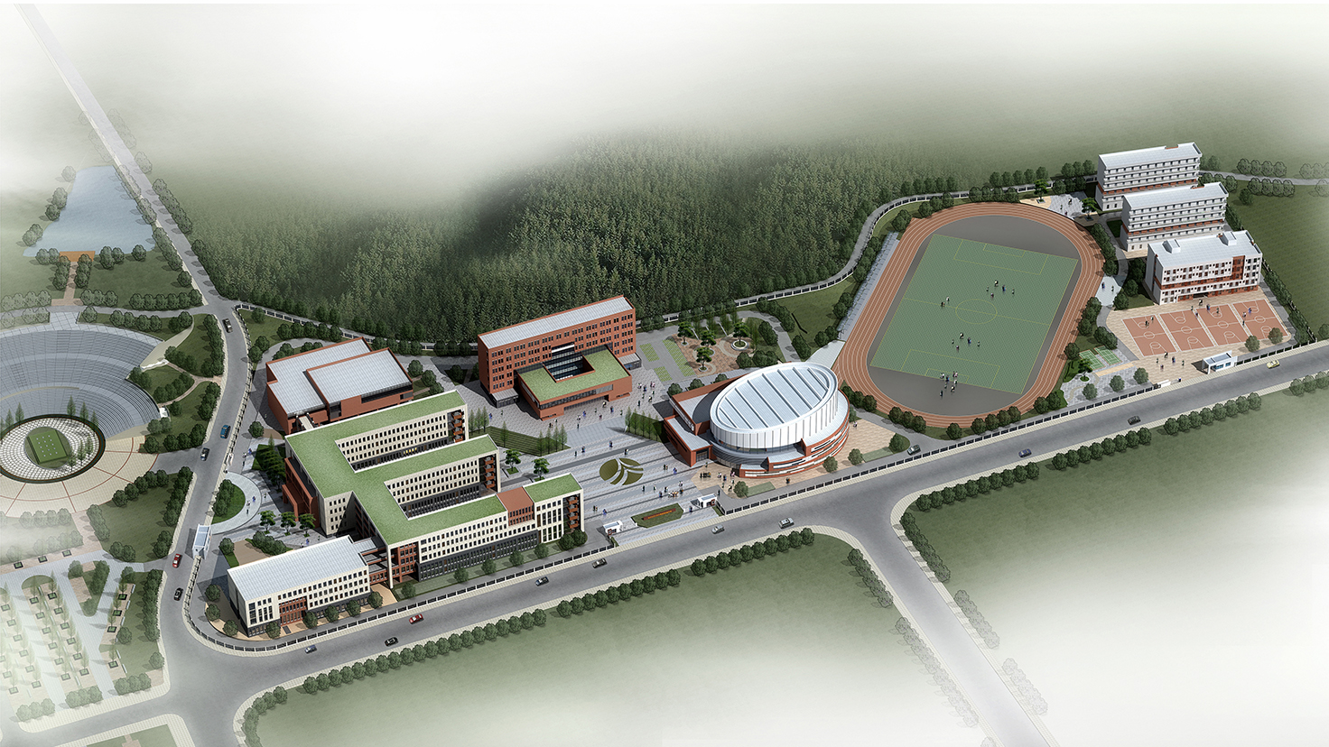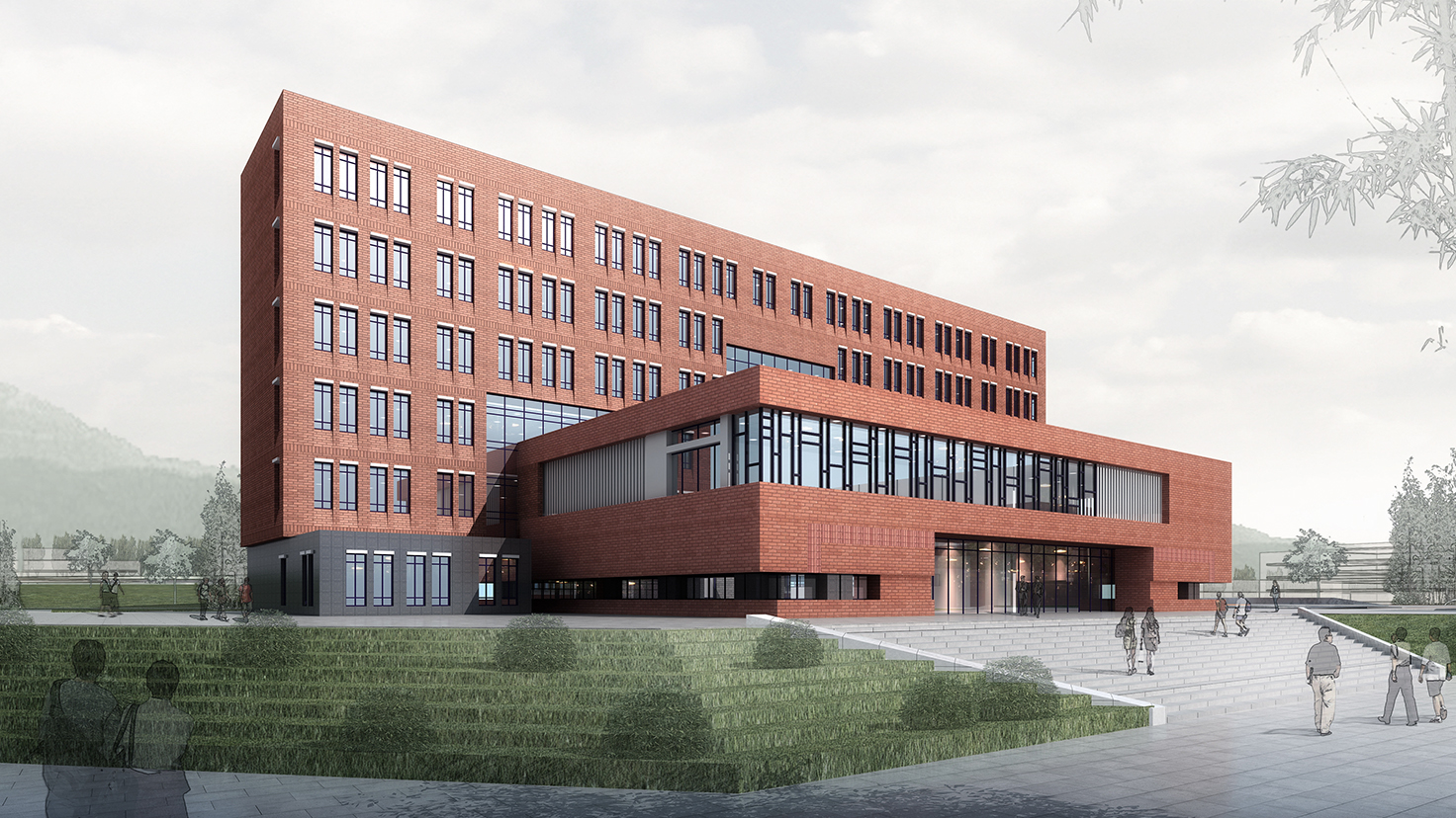 设计背景:场地难得地在绵延的山脚下非常安静的地方,自然想象出在这山脚下的房子应该是园林式的,群落式的,书院式的,规划构想在连接着梅溪湖的绿轴间,建筑将疏密有致地成为山脚下的书香群落,当然从整体到个体也许还应该刻上附中深深的印记,在布局和空间上,在记忆和文化上……