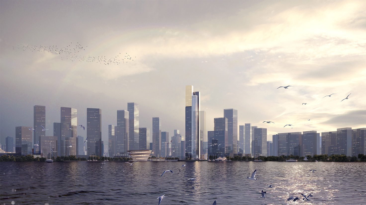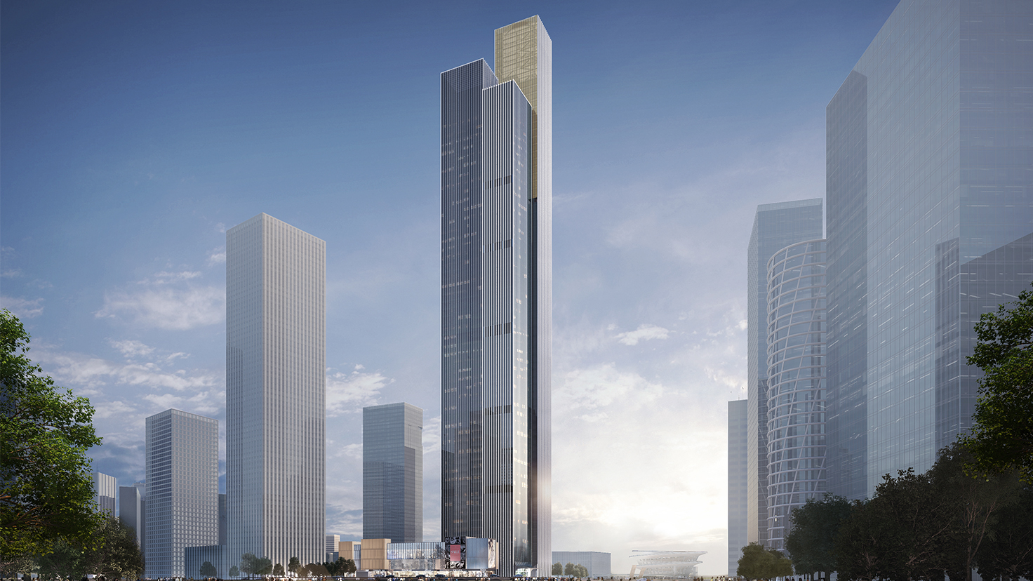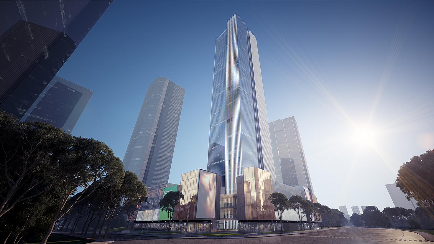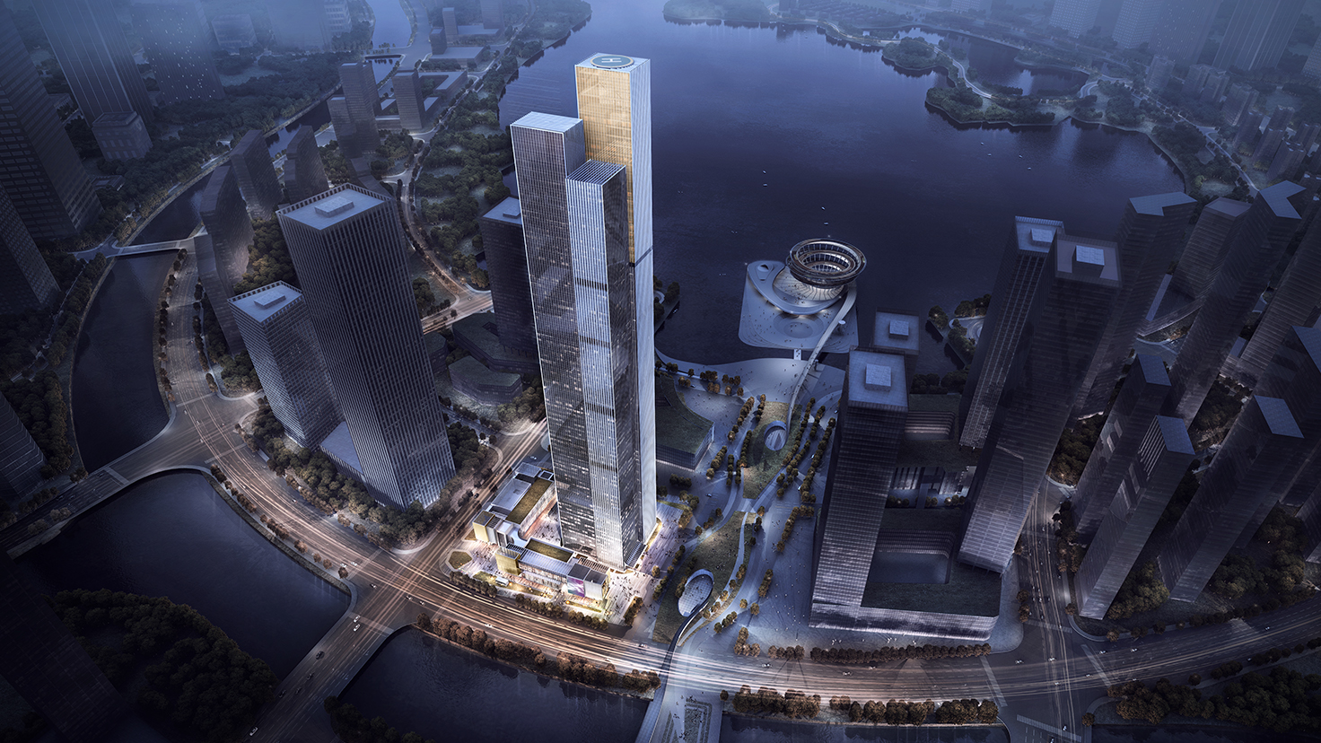 设计背景:长沙金茂大厦(F-13地块超高层项目)湖南省长沙市湘江新区梅溪湖国际新城,滨湖CBD核心区域,片区景观中轴线的东起点。湖南省省会长沙是国家综合配套改革试验区之一,国家十二五规划确定的重点开发区域,湘江新区是中部第一个国家级新区,是实施国家区域发展总体战略和长江经济带重大国家战略的重要举措,本案超高层项目将打造梅溪湖新城所规划的制高点,成为该区域内的地标性建筑。