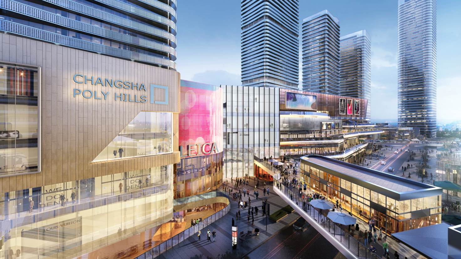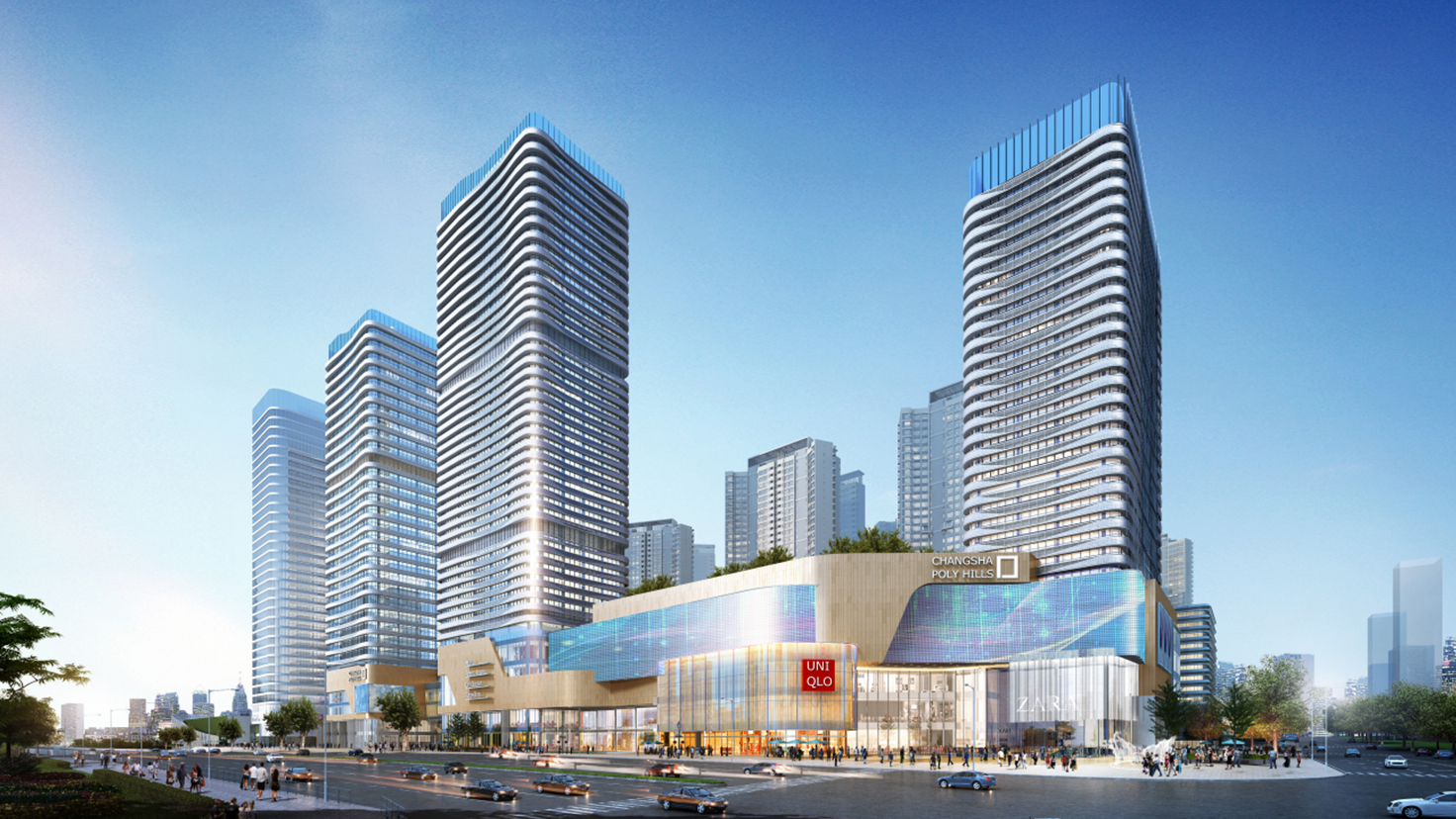 工程简介:利长沙西海岸项目充分利用江边景观资源,取自梯田“山形水阶”的灵?感,实现了“山形水街”的概念,将错落的、开放的、丰富的空间层次以“?街区”的形式表达出来。商业立面设计方面,切合规划上“山形水街”的?主题,以“LAYER叠“、“MOTION舞“、“FLUIDITY流“、“DAZZLE炫“四大概念元素,通过多层次、流线型飘带舞动造型,配合长条流动造型?的LED光炫屏带,缔造保利西海岸项目成为长沙滨江新地标,创建河西新门户,建立多维度、多样化的邻里中心,滨江活力带最重要的目的场所。