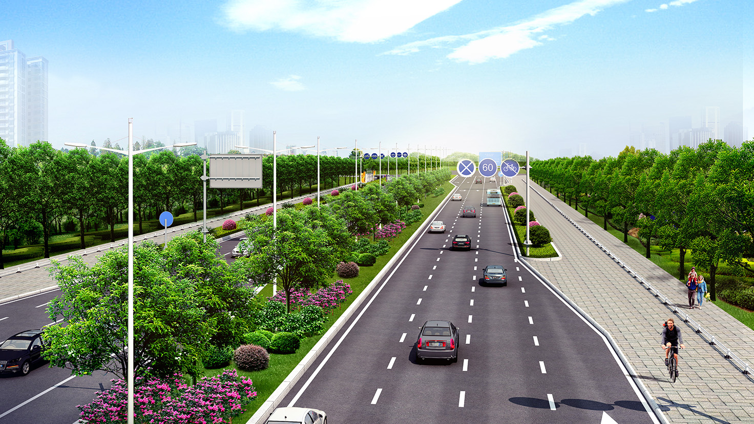 项目规模:城市主干道,设计速度60km/h,路宽55米,总长10Km。