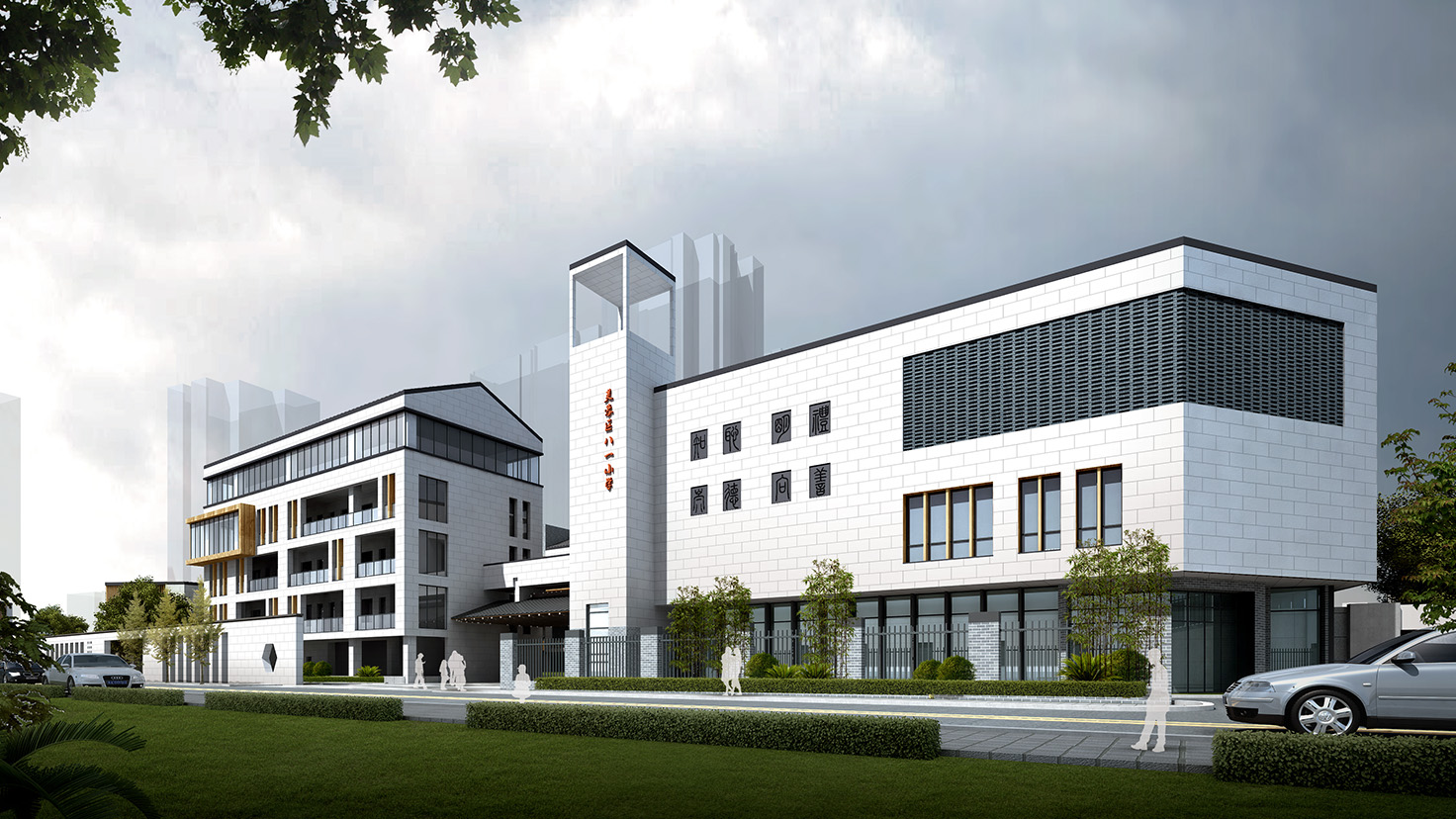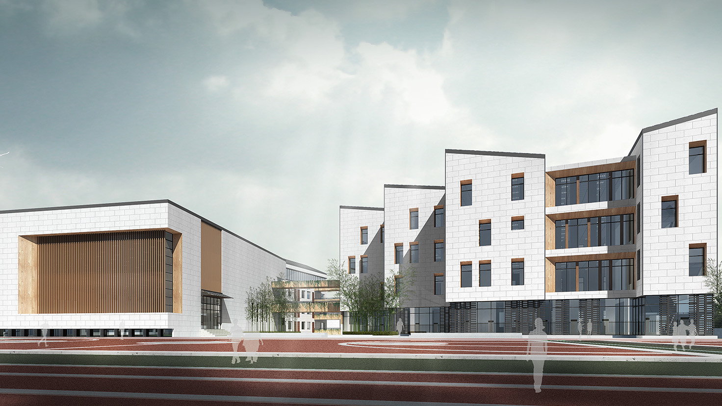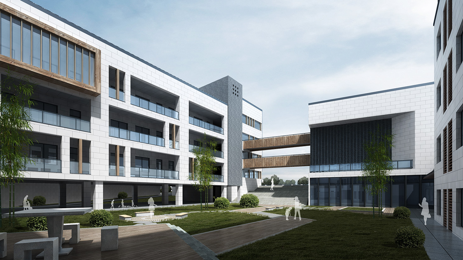 设计背景:学校体现了生态和谐的书院式校园原则,力求山水相映,自然与人和谐。 由于用地偏紧,建筑大都采用三层及五层的多层建筑形式。各组建筑通过连廊和架空平台联系在一起,形体柔美,大气,自然围合成形态各异的院落空间,柔和的界面,精巧而又不失童趣的建筑造型,传统与现代完美融合,处处吸引着有着无限求知欲望的孩子们。