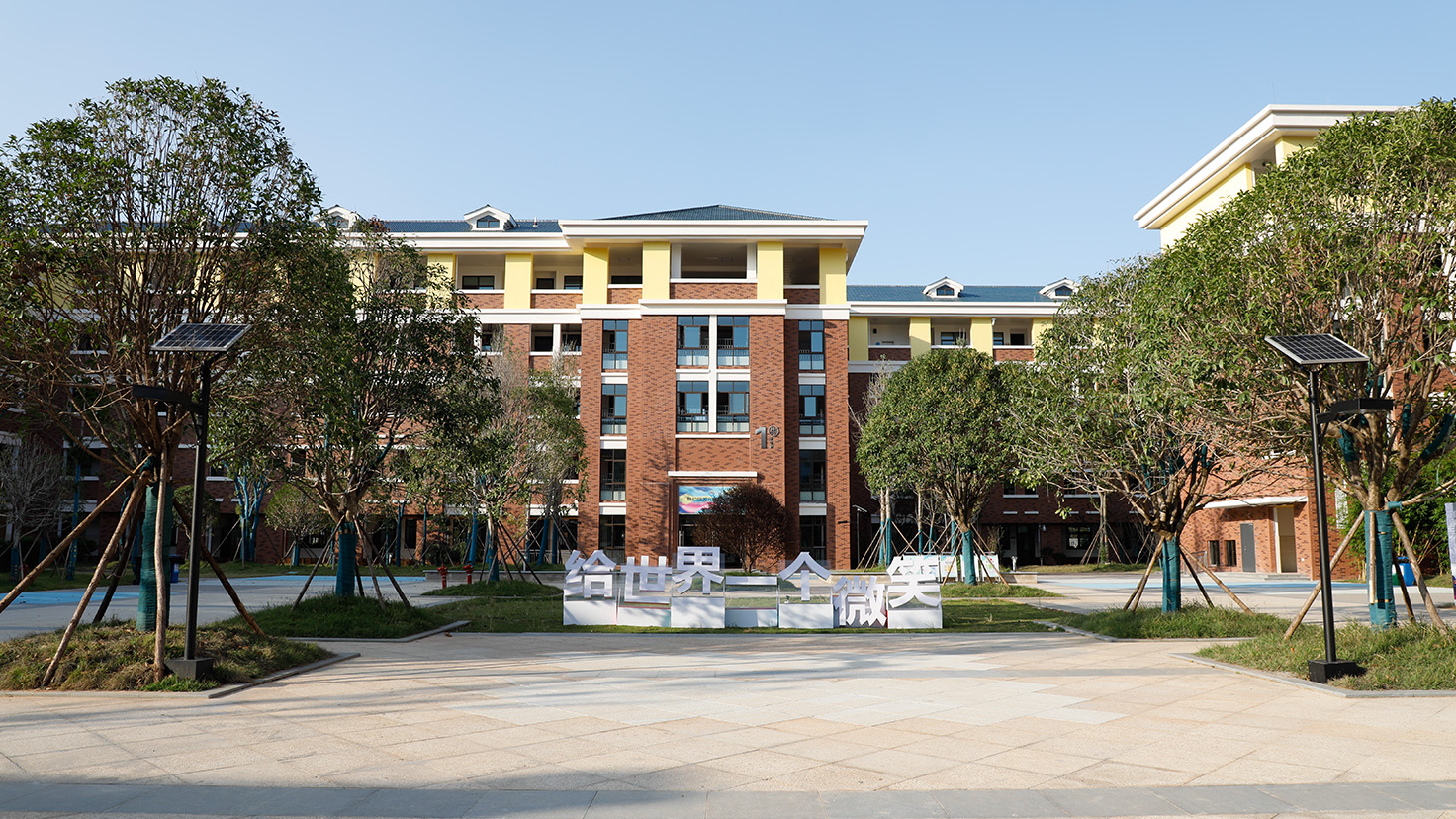 设计背景:学校体现了生态和谐的书院式校园原则,力求山水相映,自然与人和谐。 由于用地偏紧,建筑大都采用三层及五层的多层建筑形式。各组建筑通过连廊和架空平台联系在一起,形体柔美,大气,自然围合成形态各异的院落空间,柔和的界面,精巧而又不失童趣的建筑造型,传统与现代完美融合,处处吸引着有着无限求知欲望的孩子们。