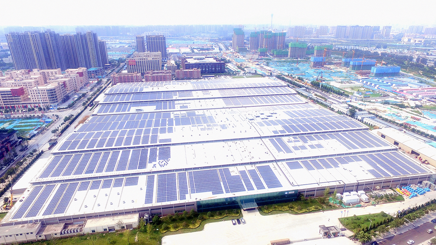 项目简介:该项目位于河南郑州福耀玻璃厂,由厦门科华恒盛电力能源有限公司投资的分布式屋顶光伏电站,共由十个连续屋面组成。此项目采用“自发自用,余电上网”的并网模式,每年能为企业节约 820 万度电,并成为郑州的一道亮丽的风景线。