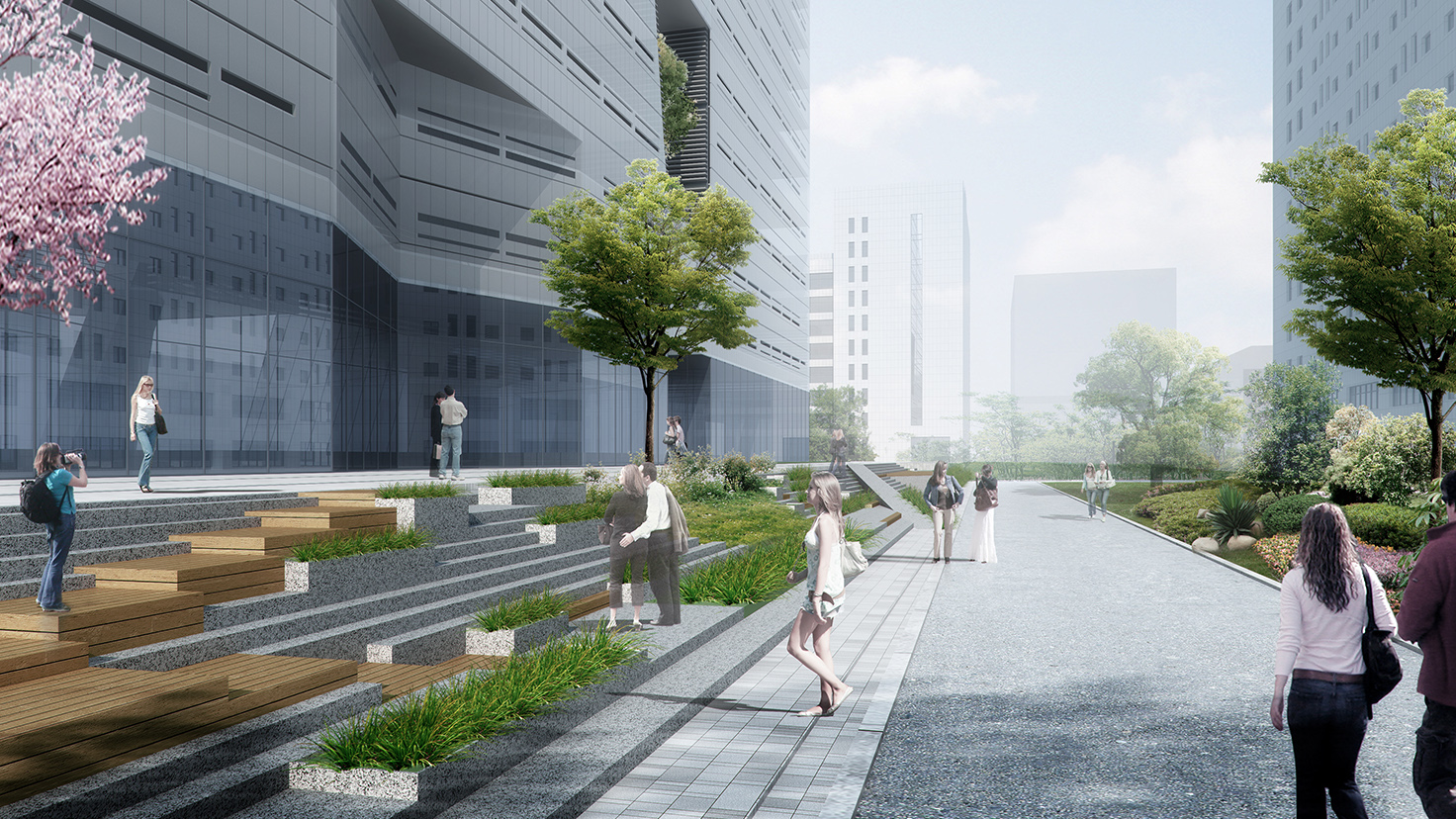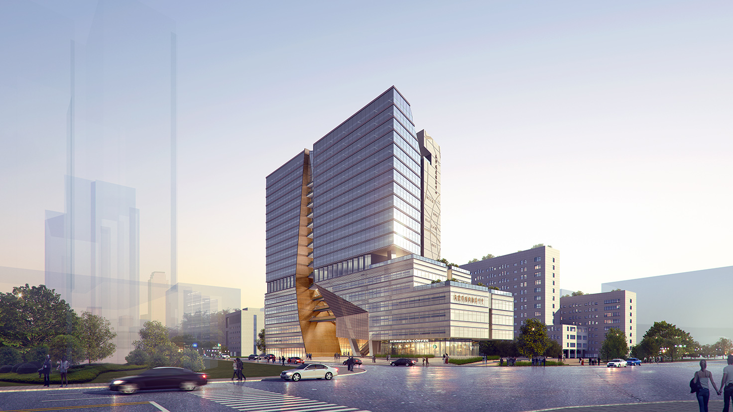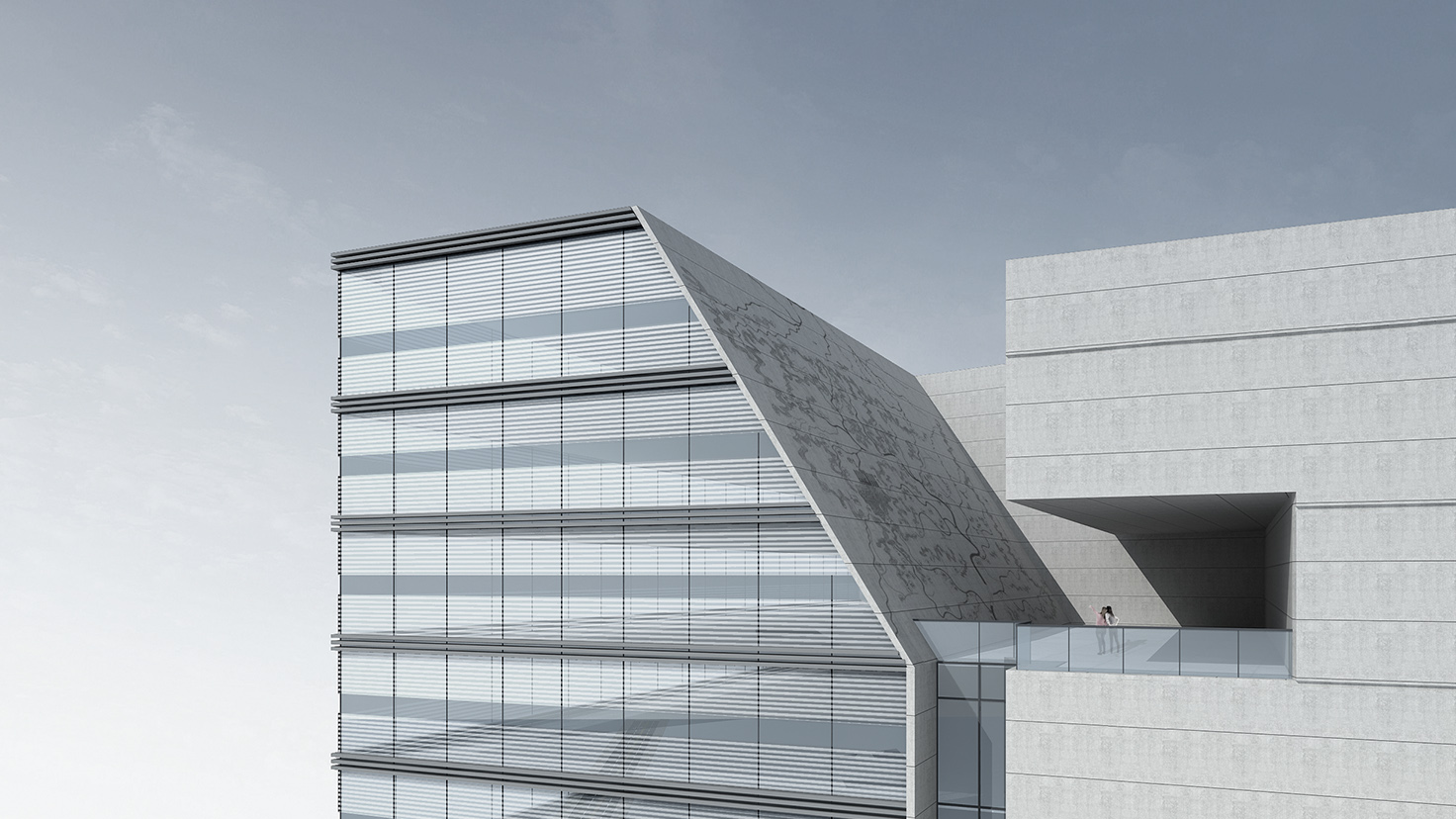 设计背景:一条湘江横贯古今,见证了长沙城市建设的发展。城建信息中心整体造型犹如砌筑的城市,历史的长河---湘江穿行而过,将建筑立面从中劈开,成为建筑最精彩的部分,城建史华丽的篇章从此处展开。 新时代的城建信息中心将回归服务市民的文化性本质,成为一个集查阅、展览、休闲和存档功能于一体的多功能建筑,一个开放亲民的城市文化会客厅。 项目紧邻公共资源交易中心和工务局,同为市政府办公用地。新建成的城建信息中心可以定性为一个充满多样性、开放度、包容性和人文馆关怀的城市休闲公园融入其中,串联起周边零散的休闲场所,成为城市重要的公共文化建筑。